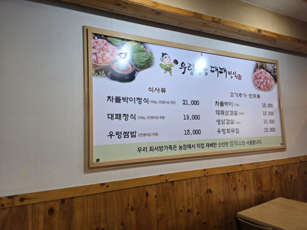 🍱 주요 메뉴: 대패정식, 차돌박이정식, 우렁쌈밥